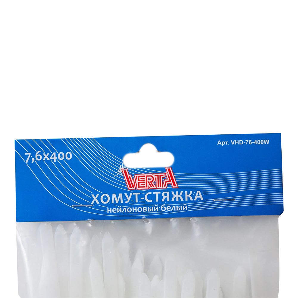Хомут-стяжка 7,6х400мм нейлоновый белый VERTA (1уп/100шт)