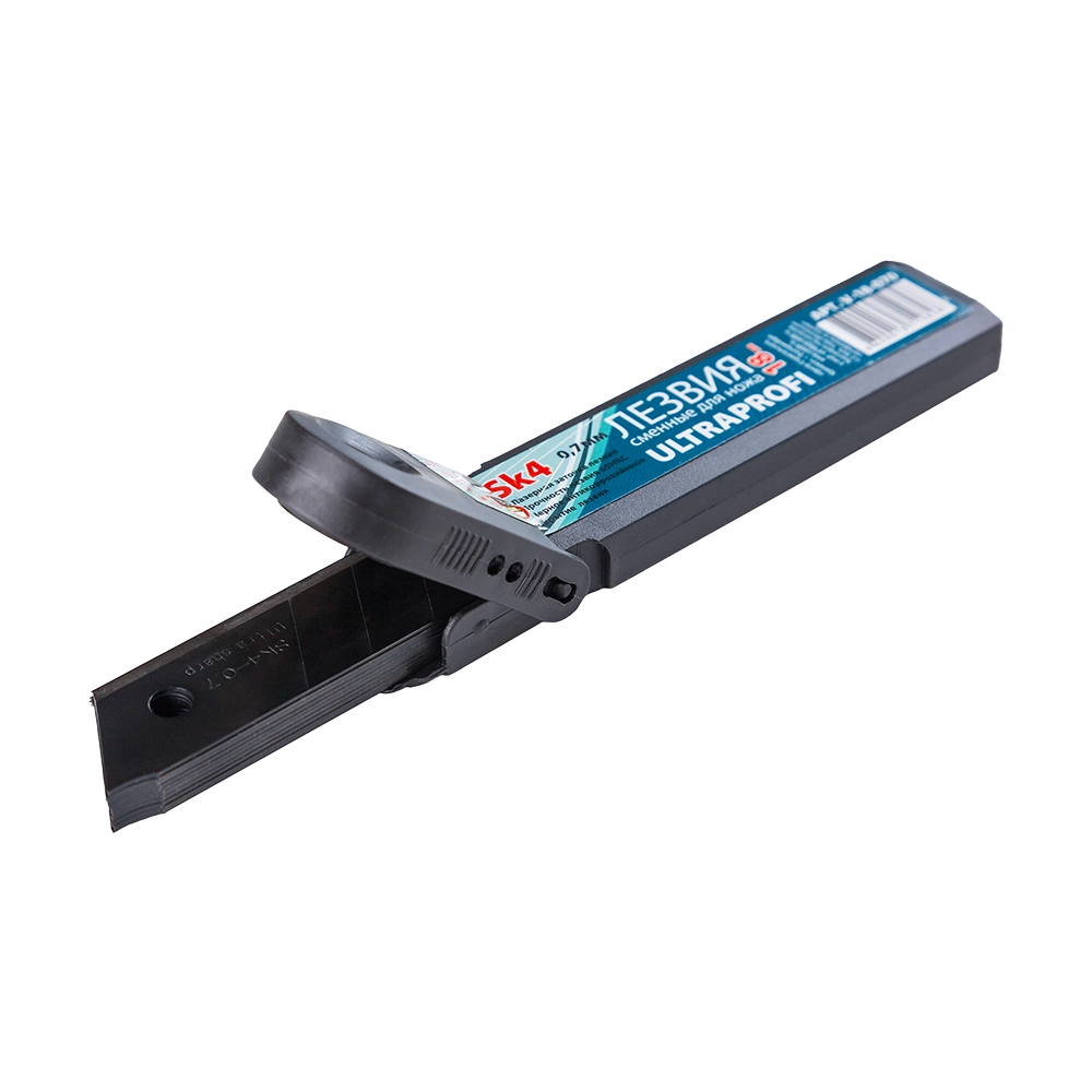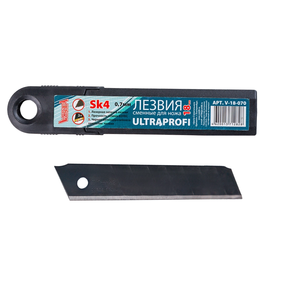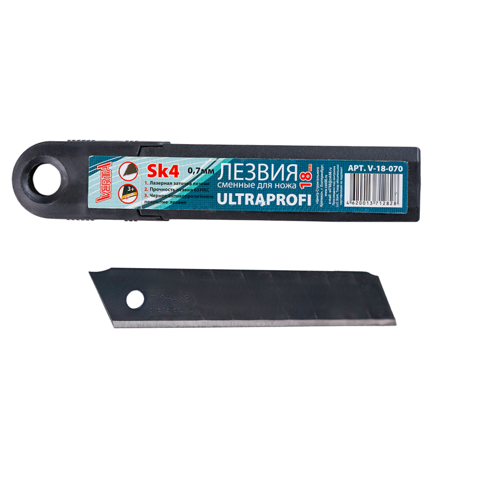 Лезвия 18мм отламывающиеся (10шт) черные толщина 0,7мм в пластиковой коробке ULTRAPROFI VERTA
