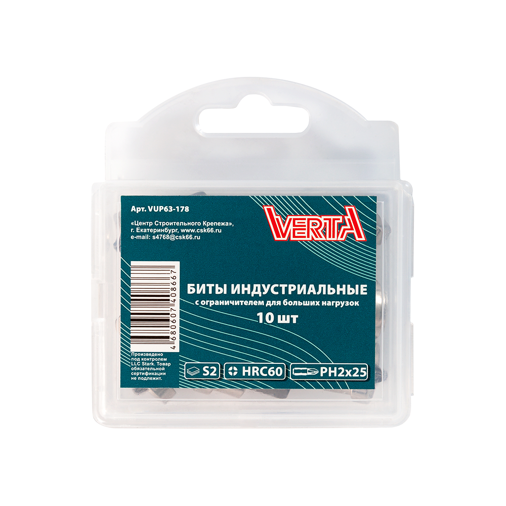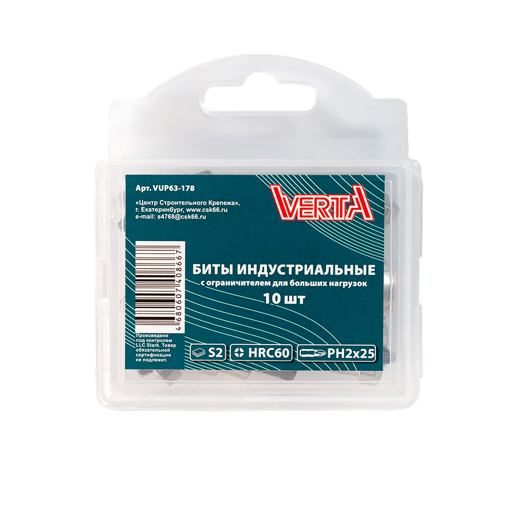 Биты Ph2х25мм с вращающимся ограничителем для больших нагрузок (10шт) ULTRAPROFI VERTA