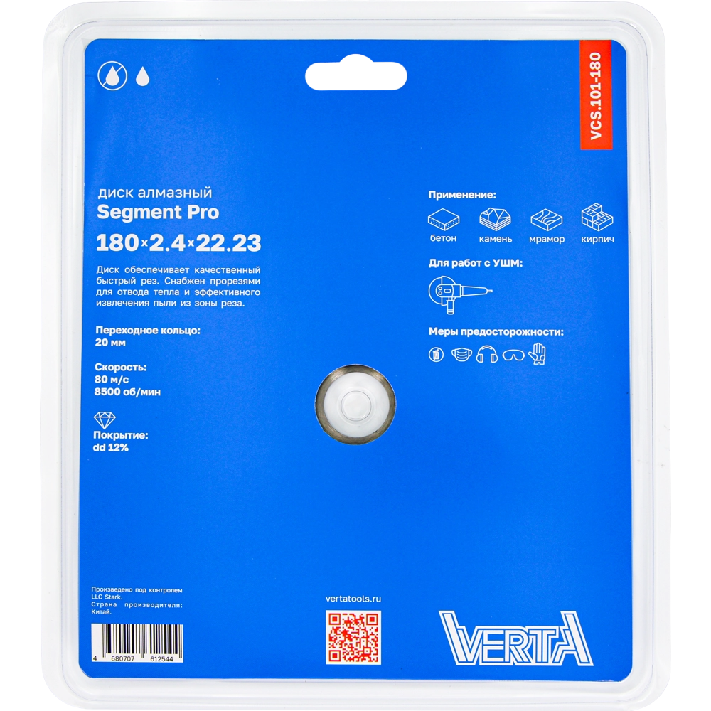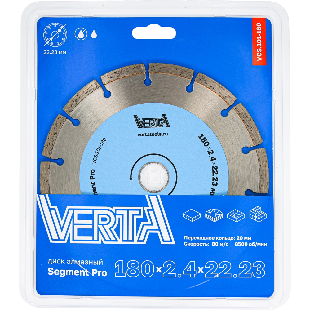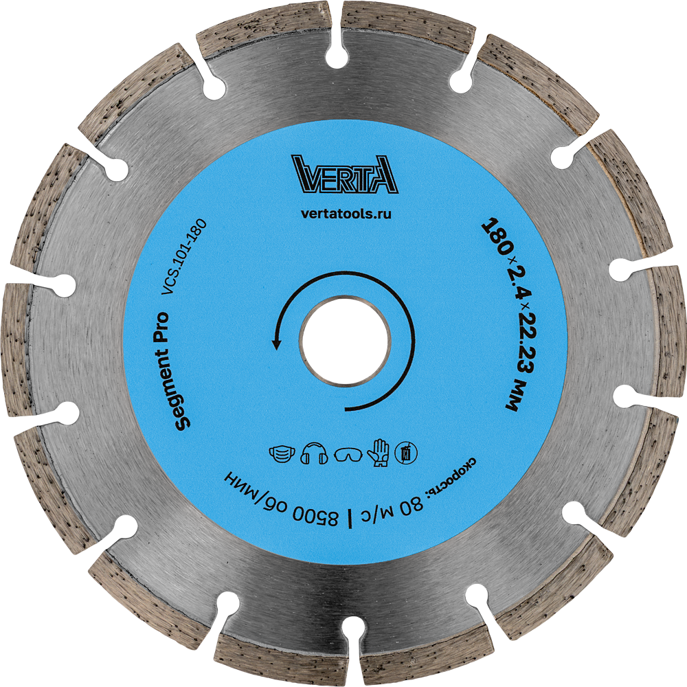 Диск алмазный 180х2,4х22,2мм сегментный сухой и влажный рез Segment Pro VERTA