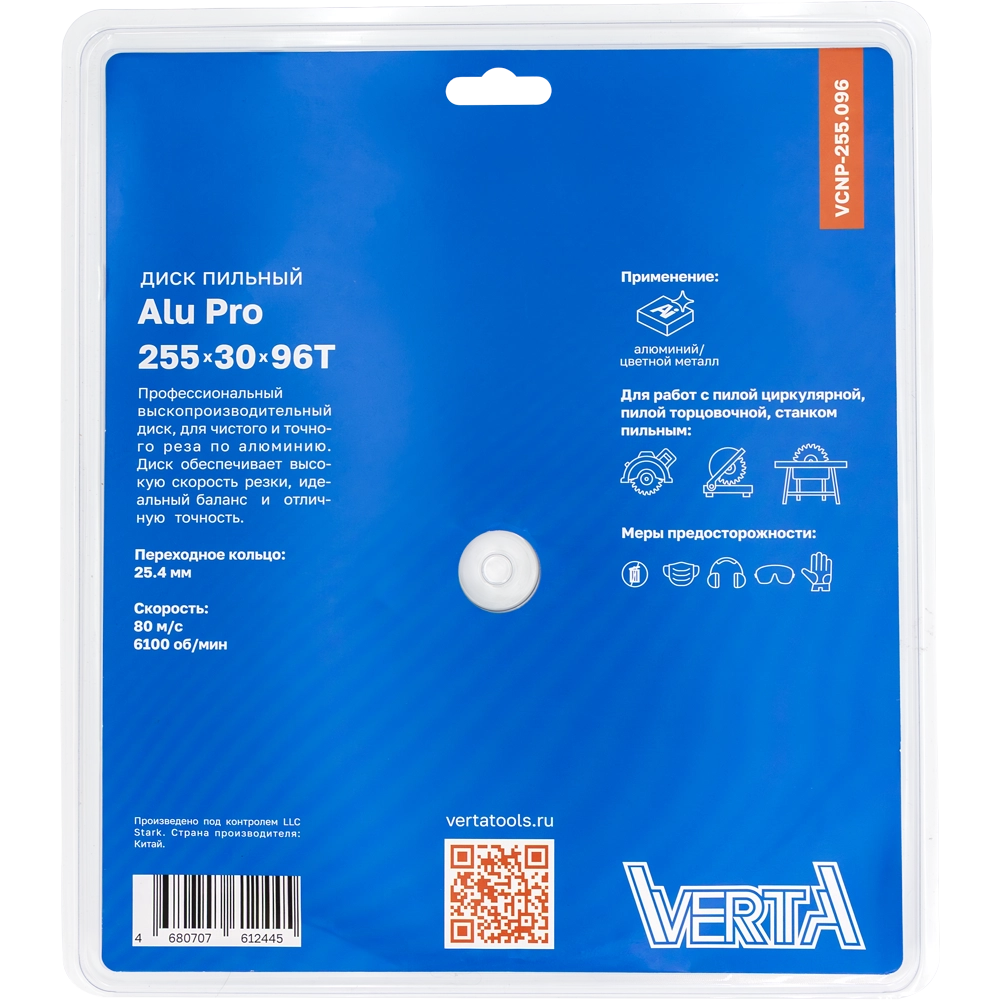 Диск пильный по алюминию 255x30/25.4х2.8/2.0x96T Alu Pro VERTA