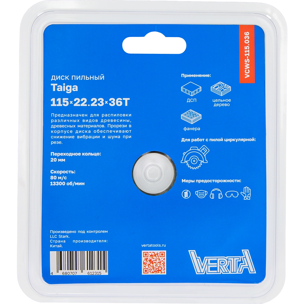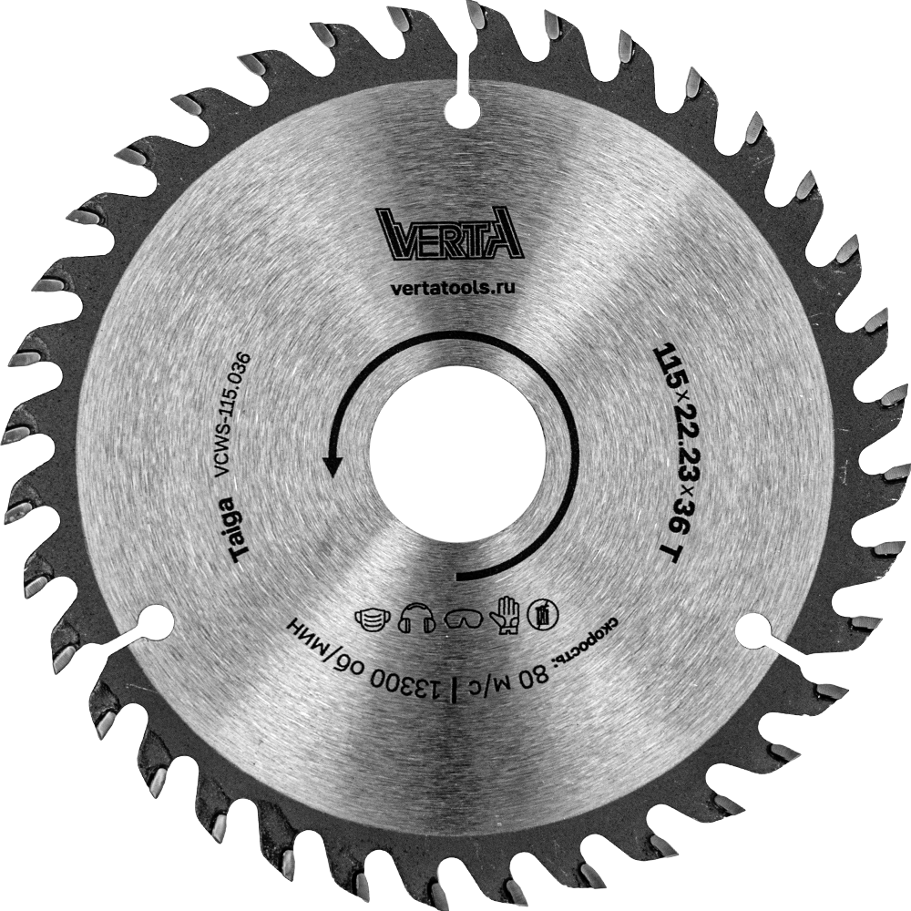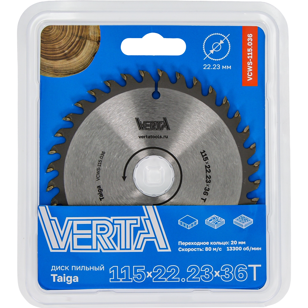 Диск пильный по дереву 115x22,23/20x2.0/1.2х36T Taiga VERTA
