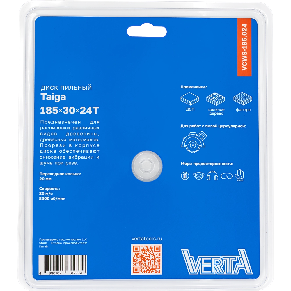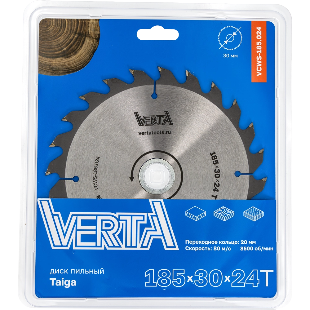 Диск пильный по дереву 185x30/20x2.2/1.4х24T Taiga VERTA