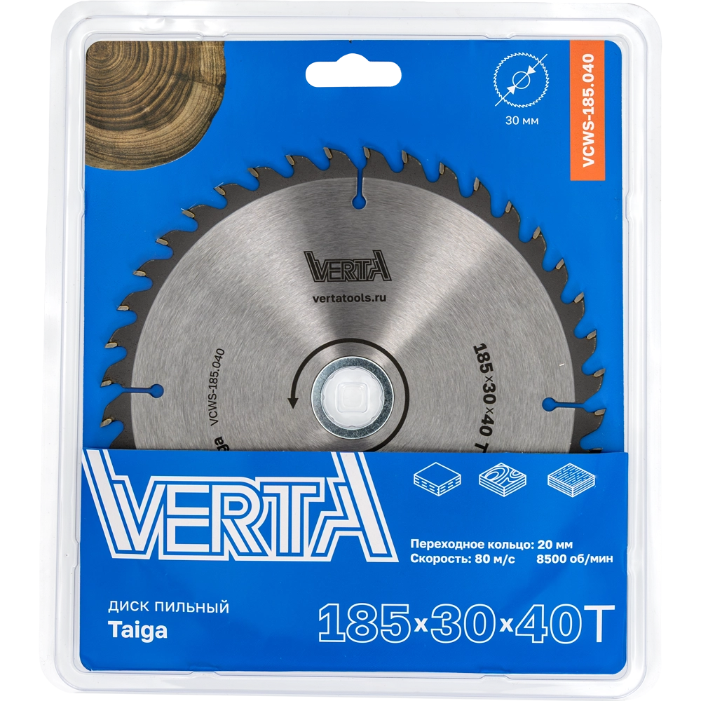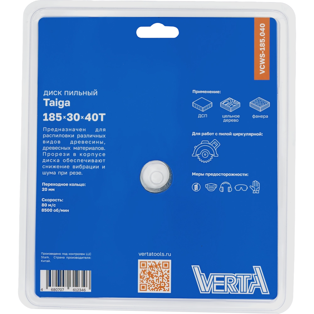 Диск пильный по дереву 185x30/20х2.2/1.4x40T Taiga VERTA