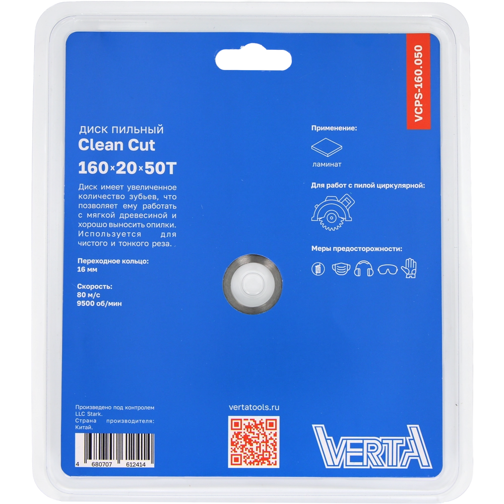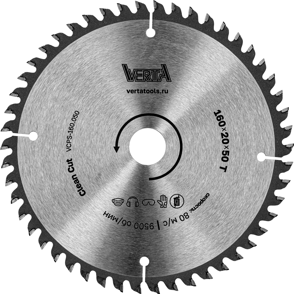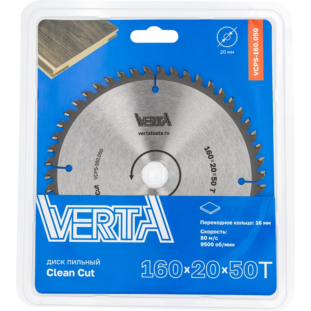 Диск пильный по ламинату и МДФ 160x20/16х2.2/1.4x50T Clean Cut VERTA