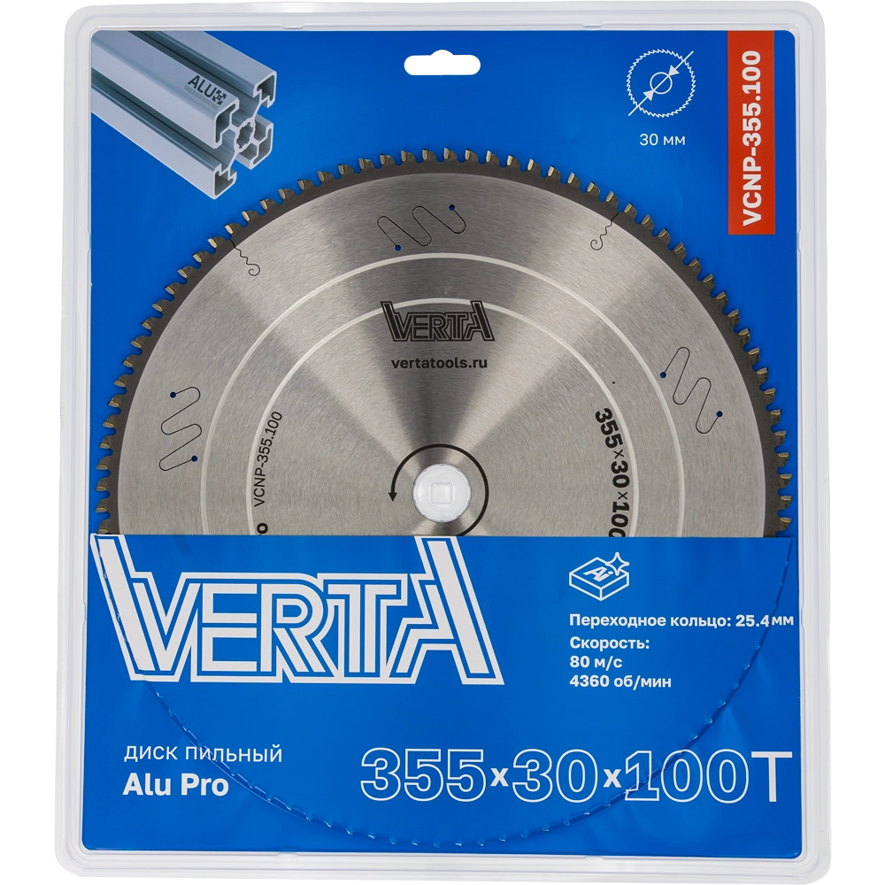 Диск пильный по алюминию 355x30/25.4х3.2/2.4x100T Alu Pro VERTA