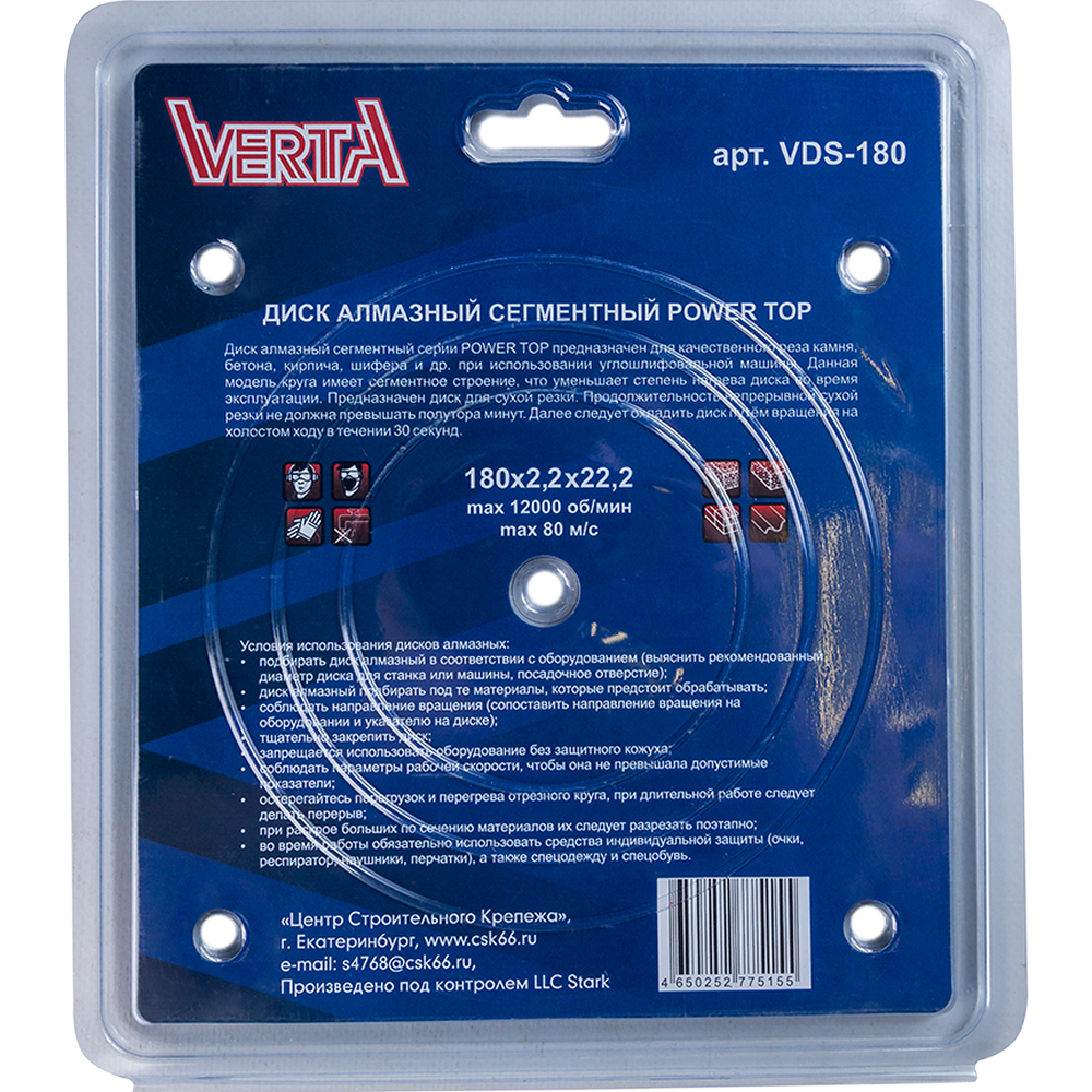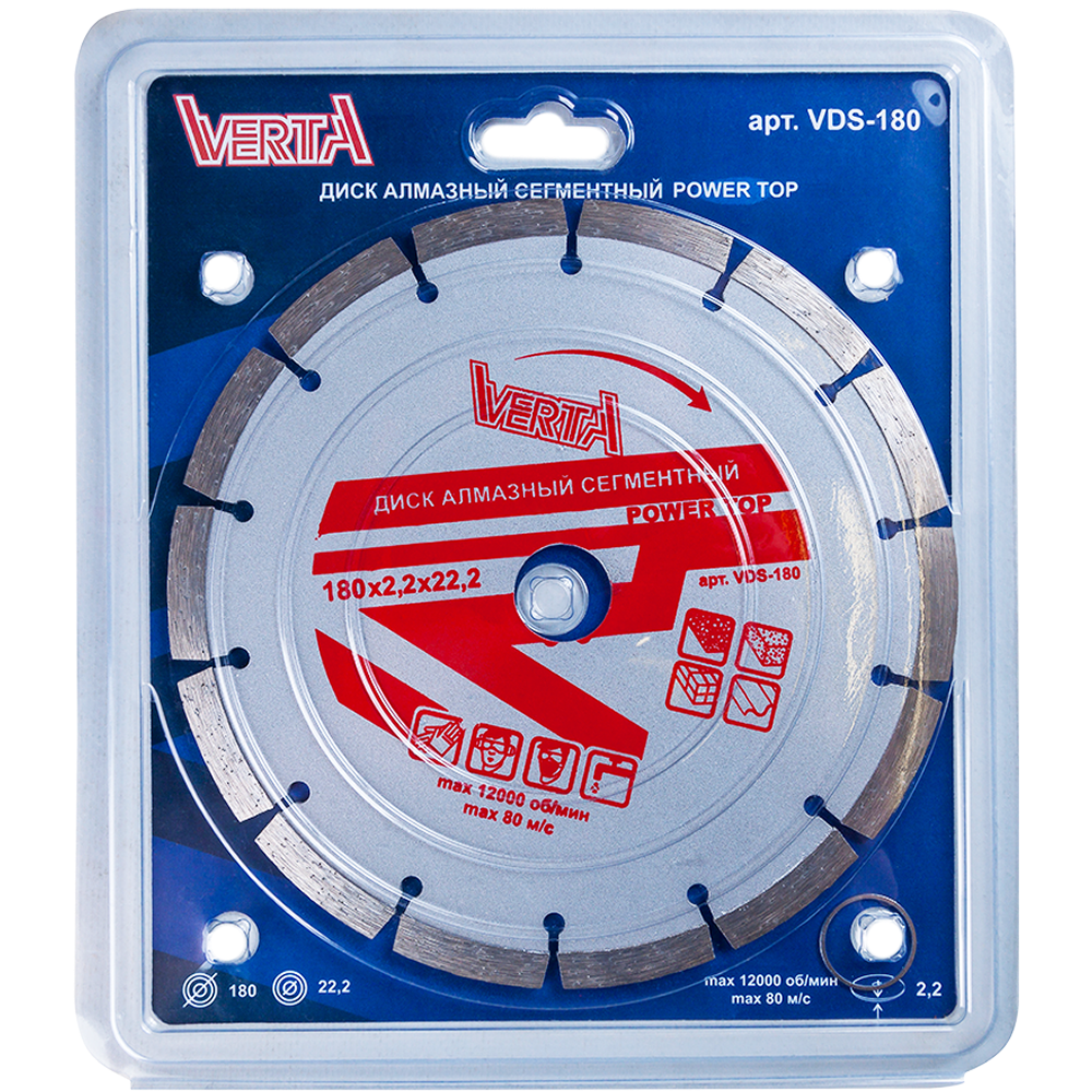 Диск алмазный 180х2,2х22,2мм сегментный сухой рез Power Top VERTA