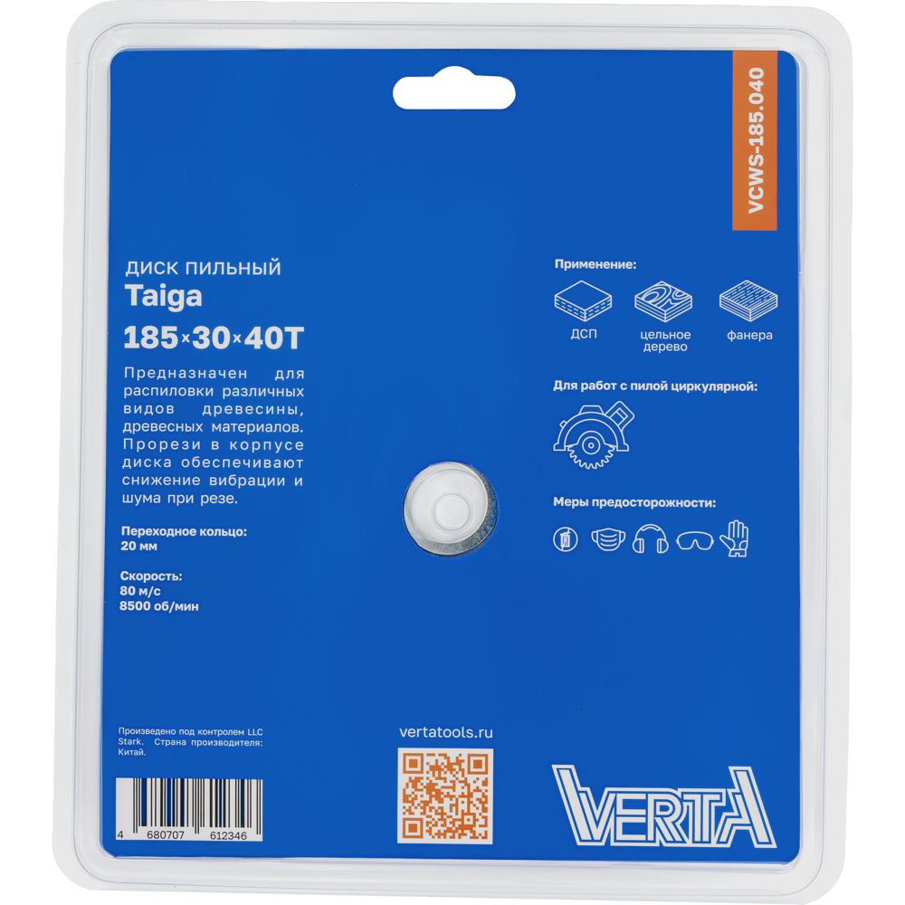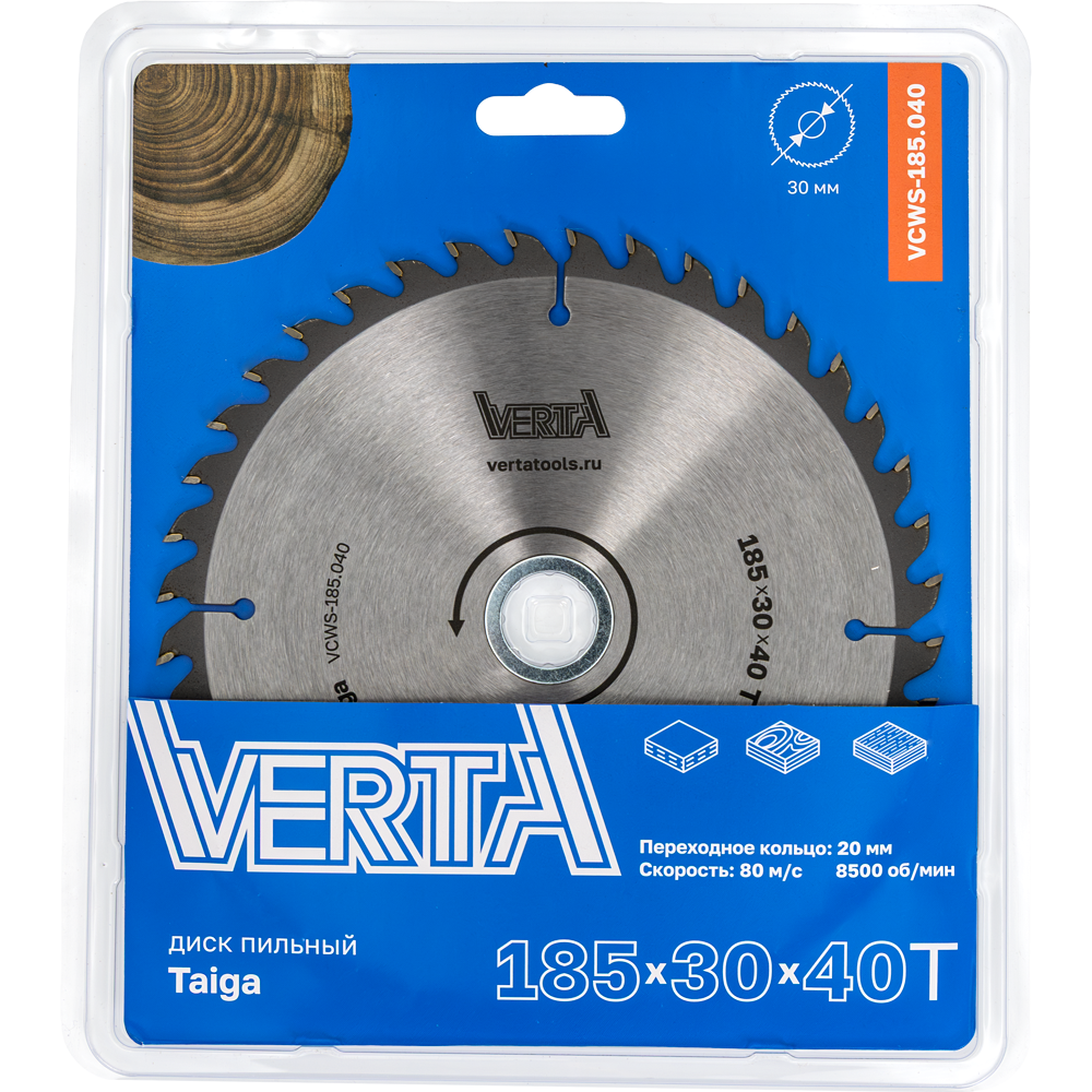Диск пильный по дереву 185x30/20х2.2/1.4x40T Taiga VERTA