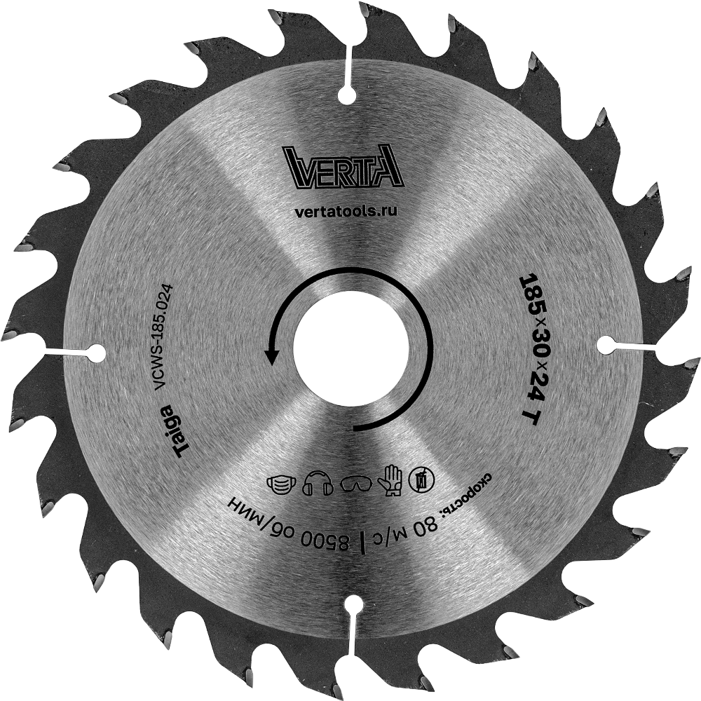 Диск пильный по дереву 185x30/20x2.2/1.4х24T Taiga VERTA