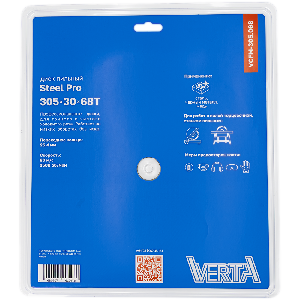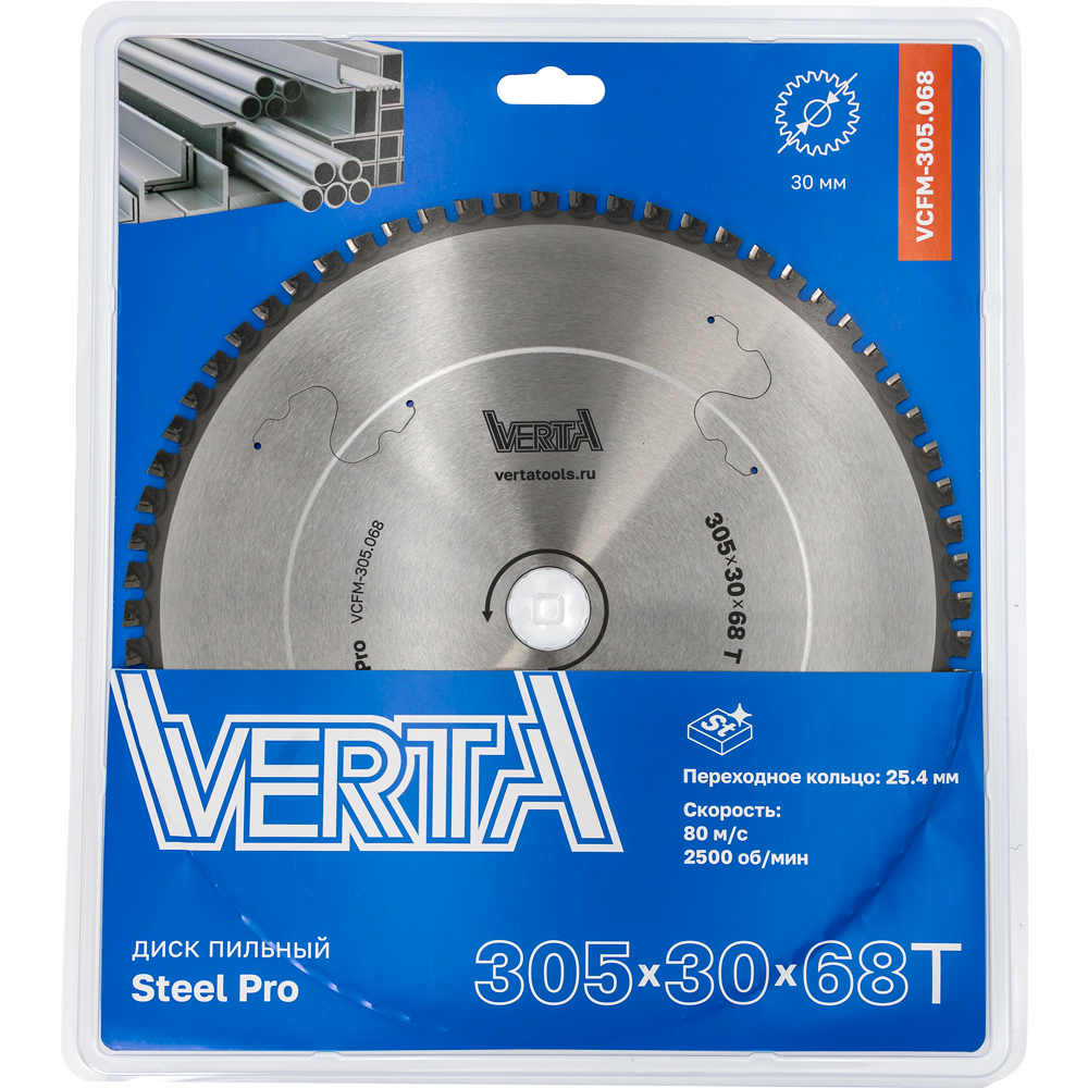 Диск пильный по стали 305x30/25.4х2.4/2.0x68T Steel Pro VERTA