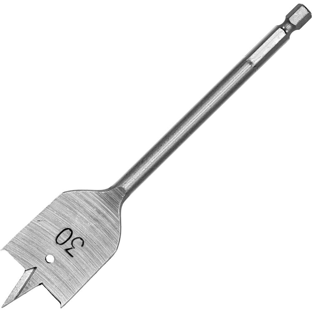 Для сверления отверстий в изделиях, изготовленных из древесины. Рабочая часть – плоская лопатка, в центре которой имеется острый выступ, используемый для центровки выполняемого отверстия. Хвостовая часть шестигранная. Сверление дерева при помощи перьевых сверл выполняется на невысокой скорости вращения.